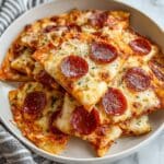 These 2 ingredient pizza chips are a quick and delicious snack made with just shredded mozzarella cheese and pepperoni slices. Baked until golden and crispy, they’re perfect for satisfying pizza cravings without the carbs or fuss. Ideal for an easy appetizer or a tasty party treat.