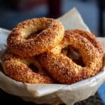 7. Air Fry Bagels: Place the shaped bagels evenly in the preheated air fryer basket. Depending on your air fryer’s size, you may need to cook in batches. Cook the bagels for approximately 15-17 minutes until they turn golden brown. Check at 10 minutes and continue as needed since air fryer performance varies.