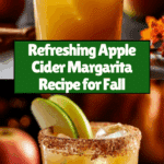 A refreshing and festive Apple Cider Margarita cocktail that combines the crisp sweetness of apple cider with tequila and a hint of cinnamon sugar-rimmed glass for a perfect fall-inspired drink.