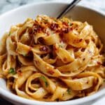 Store leftover noodles in an airtight container in the refrigerator for up to 2 days. Reheat gently in a skillet over low heat, adding a splash of vegetable broth or water to loosen the sauce as needed. Avoid microwaving to maintain texture.