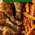 Baked chicken drumsticks with sweet potato fries make a delicious and easy weeknight meal. This recipe combines crispy, flavorful chicken with tender, sweet fries for a perfect balance. Serve with honey mustard for a tasty dipping sauce that everyone will love.