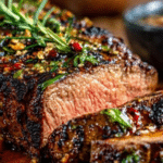 This Balsamic Marinated Flank Steak with Blue Cheese Crust is a flavorful and elegant dish perfect for a hearty dinner. The flank steak is marinated in a tangy balsamic vinaigrette infused with green onions and brown sugar, then broiled to a perfect medium rare. A rich blue cheese crust with crispy panko breadcrumbs tops the steak for a delightful contrast of textures and bold flavors. Resting the steak before slicing ensures juicy, tender bites every time.