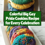Celebrate with Big Gay Pride Cookies, a vibrant twist on classic chocolate chip cookies. These colorful treats combine rich chocolate candies and sprinkles for a fun, festive bite that’s perfect for any occasion.