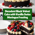 Black Velvet Cake is a rich, deeply chocolatey twist on the classic red velvet, made with black cocoa powder for an intense color and flavor. Paired with smooth vanilla Swiss meringue buttercream, this cake is perfect for special occasions or any chocolate lover’s craving.