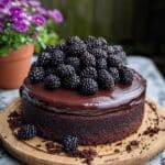 - Assemble the Cake: Place one cake layer on a serving plate. Spread a generous layer of the cooled blackberry filling evenly over the cake. Carefully place the second cake layer on top. Cover the top of the cake with the whipped cream, spreading it smoothly or creating decorative peaks. Garnish with fresh blackberries, edible flowers, dark chocolate shavings, and lightly dust with cocoa powder for an elegant finish.