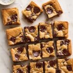 - Cool and Serve: Remove the pan from the oven and place it on a wire rack. Allow the blondies to cool completely before slicing along the foil or parchment overhang and serving.