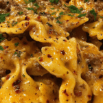 A creamy and flavorful Cajun Cream Cheese Alfredo Bowties recipe combining tender ground beef with a rich, spicy cream cheese Alfredo sauce and perfectly cooked bowtie pasta. This comforting dish offers a quick and delicious twist on classic Alfredo with a zesty Cajun kick.