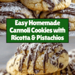 These delightful Cannoli Cookies combine the creamy ricotta filling and crisp texture of traditional cannoli into a delicious, easy-to-make cookie. Each cookie is filled with a sweet ricotta mixture studded with mini chocolate chips and chopped pistachios, then baked to golden perfection and dusted lightly with powdered sugar for a perfect Italian-inspired treat.