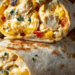 These Cheesy Garlic Chicken Wraps combine tender, seasoned chicken with a creamy, cheesy mixture, all wrapped in warm, golden tortillas. Perfect for a quick and satisfying meal, these wraps are enhanced by garlic’s aromatic flavor and a blend of mozzarella and cheddar cheese, creating a deliciously gooey filling that melts in your mouth.