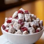 Cherry Cheesecake Puppy Chow is a sweet and crunchy snack mix that combines the rich flavors of white chocolate, cherry, and cheesecake pudding. It’s an easy-to-make treat perfect for parties, movie nights, or whenever you want a delicious bite-sized indulgence.