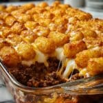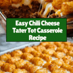 This Chili Cheese Tater Tot Casserole is a comforting and hearty dish perfect for weeknight dinners. Layers of crispy tater tots, savory chili, and melted cheddar cheese come together to create a crowd-pleasing meal that’s easy to prepare.