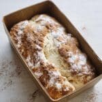 - Create the swirl: Use a knife to gently pull through the batter a few times to create a slight swirl effect mixing the cinnamon with the batter.