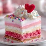 This Circus Animal Cheesecake features a colorful, fun twist on classic cheesecake by incorporating a crispy circus animal cookie crust and vibrant pink cheesecake filling. Topped with rainbow sprinkles and additional circus animal cookies, this dessert is perfect for celebrations and those who love playful, sweet treats.