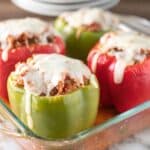 Keywords: stuffed peppers, baked stuffed peppers, ground beef stuffed peppers, mozzarella cheese, classic stuffed peppers, comfort food, family meal