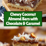These Coconut Almond Bars combine a buttery crust with a rich, toasted coconut filling and a layer of melted milk chocolate, topped with caramel and crunchy almonds. They are a delightful treat that balances sweetness and texture, perfect for any occasion.