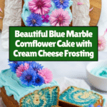 Keywords: cornflower cake, blue spirulina cake, marbled cake, cream cheese frosting, floral cake, loaf cake, natural food coloring