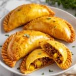 These traditional British Cornish Pasties are hearty hand pies filled with tender beef, potatoes, rutabaga, and aromatic herbs, all encased in a flaky homemade shortcrust pastry. Perfectly baked to golden perfection, they make an ideal savory snack or meal.