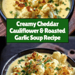 This creamy cheddar cauliflower and roasted garlic soup is a comforting and flavorful dish perfect for chilly days. Packed with tender cauliflower, rich roasted garlic, and sharp cheddar cheese, it’s a satisfying meal that’s easy to make at home.