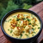 This Creamy Cheddar Cauliflower & Roasted Garlic Soup is a comforting and velvety dish featuring roasted garlic and cheddar cheese for rich flavor. Cauliflower florets are simmered until tender, blended to a smooth texture, and enriched with milk and sharp cheddar cheese for a luscious, satisfying soup perfect for a cozy meal.