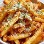 Store leftover garlic fries in an airtight container in the refrigerator for up to 2 days. To reheat and restore some crispiness, spread them in a single layer in the air fryer or oven at 400°F (200°C) for 3–5 minutes. Avoid microwaving as it can make the fries soggy.