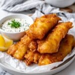 Best enjoyed immediately for maximum crispiness. If you have leftovers, store them in an airtight container in the refrigerator for up to 1 day. To reheat, place fish on a wire rack in a preheated oven at 375°F (190°C) for 5-8 minutes to restore crispiness. Avoid microwaving, as it will make the batter soggy.