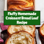 Keywords: croissant bread loaf, laminated bread, yeasted bread, flaky bread, French bread, homemade croissant loaf