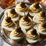 These Dirty Martini Deviled Eggs are a sophisticated twist on the classic appetizer, combining creamy deviled egg filling with the briny flavors of olives, vermouth, and olive brine. Perfect for cocktail parties or holiday gatherings, they bring a touch of elegance and a delightful burst of savory taste in every bite.