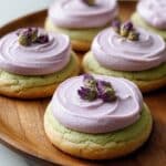 Keywords: matcha sugar cookies, lavender frosting, matcha cookies, floral frosting, spring cookies, tea time desserts, soft cookies
