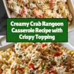 This easy Crab Rangoon Casserole combines creamy crab filling, egg noodles, and a rich homemade sauce, baked to perfection and topped with a crispy Parmesan and panko breadcrumb crust. It’s a comforting, flavorful dish that brings the classic Crab Rangoon flavors into a satisfying casserole form, perfect for family dinners or gatherings.