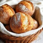 These Easy No Knead German Crusty Rolls are delightfully airy with a crisp, golden crust. Made with minimal effort, the dough ferments overnight to develop complex flavors, resulting in rustic, bakery-style rolls perfect for any meal.