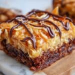 - Serve: Slice into squares and enjoy your decadent Samoa Brownies.