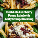 This refreshing Feta & Cranberry Penne Salad features tender pasta tossed with tangy feta, sweet dried cranberries, crunchy toasted walnuts, and fresh baby spinach, all brought together with a bright and zesty orange vinaigrette. Perfect for a light lunch or a vibrant side dish, this salad balances savory, sweet, and citrus flavors for a delightful culinary experience.