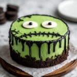 This fun and festive Frankenstein Cheesecake features a creamy, green-tinted filling set atop a rich chocolate cookie crust. Perfect for Halloween or any spooky occasion, it’s decorated with candy eyes and black gel icing to bring Frankenstein’s iconic monster to life with cute and creepy details.