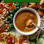 Store leftover peanut sauce in an airtight container in the refrigerator for up to 3 days. Reheat gently on the stove with a little water to loosen it before serving. The cooked vegetables and tempeh are best eaten fresh but can be stored separately in the fridge for 1-2 days. Avoid mixing the sauce with salad components when storing to keep textures intact.