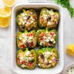 Keywords: Greek chicken stuffed peppers, ground chicken stuffed bell peppers, healthy stuffed peppers, Mediterranean stuffed peppers, baked stuffed peppers