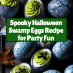 Halloween Swamp Eggs are a spooky twist on classic deviled eggs, featuring a crackled blueberry-dyed shell and a vibrant green filling. Perfect for a festive party, they bring a fun and eerie touch to your appetizer table.