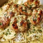- Serve: Serve the hot, creamy Angel Chicken generously over cooked egg noodles, rice, or mashed potatoes. Garnish with freshly chopped parsley, if desired, to add a fresh touch before serving.
