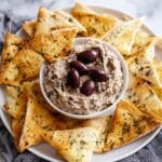 - Serve: Transfer the Kalamata olive dip into a serving bowl using a spatula. Provide a cheese knife for spreading and arrange pita chips or crackers around the dip for easy serving.