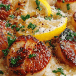 This Lemon Butter Scallops with Spring Risotto recipe combines tender, seared sea scallops in a zesty lemon butter sauce with a creamy and vibrant spring vegetable risotto featuring peas, asparagus, and Parmesan cheese. It’s an elegant yet approachable dish perfect for a special weeknight dinner or entertaining guests, balancing fresh seafood flavors with a rich, comforting risotto.