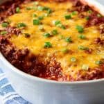 7. Repeat Layering: Add the remaining beef mixture over the first layer, spreading evenly. Top with the remaining 1 cup of shredded cheddar cheese to create a cheesy crust.