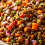 A refreshing and nutritious Mediterranean lentil salad featuring tender brown lentils, fresh vegetables, tangy balsamic dressing, and crumbled feta cheese. Perfect as a light meal or side dish, packed with flavor and wholesome ingredients.