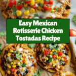 These Mexican Rotisserie Chicken Tostadas are a quick and flavorful meal perfect for busy weeknights. Crispy baked tortillas are topped with a savory chicken and bean mixture, melted cheese, and fresh garnishes for a satisfying bite every time.