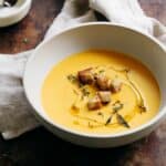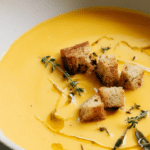This comforting Miso & Butternut Soup combines the natural sweetness of butternut squash with the savory depth of miso and butter beans, creating a creamy and nutritious dish. Enhanced with aromatic ginger, sesame oil, and crunchy kale topped with toasted sesame seeds, this soup is both hearty and packed with flavor. Perfect for a warming meal, it’s easy to prepare and delights the palate with a balance of creamy texture and vibrant toppings.