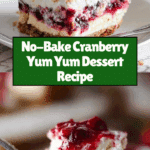 No-Bake Cranberry Yum Yum is a delightful layered dessert featuring a crunchy graham cracker crust, creamy whipped cream and cream cheese filling, and a tart cranberry topping. It’s easy to prepare and perfect for holidays or any time you want a refreshing treat without turning on the oven.