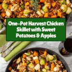 This One-Pot Easy Harvest Chicken Skillet is a warm, comforting dish that celebrates autumn flavors like sweet potatoes, Brussels sprouts, and fresh apples. It’s simple to prepare and brings a perfect balance of savory, sweet, and nutty elements all in one skillet.