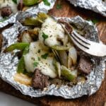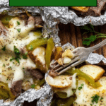 Keywords: Philly cheesesteak, foil pack, ribeye steak recipe, easy dinner, grilled foil packets, oven-baked steak, provolone cheese