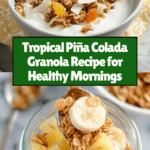 Enjoy a tropical twist on your breakfast with this vibrant Piña Colada Granola. It combines crunchy nuts, toasted oats, and sweet tropical fruits for a deliciously wholesome start to your day.