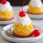 These Pineapple Upside Down Cupcakes offer a delightful twist on the classic pineapple upside-down cake. Individual-sized and topped with sweet pineapple chunks caramelized in brown sugar and butter, these cupcakes are finished with a cloud of whipped cream and a maraschino cherry for a perfect party treat or a tropical-inspired dessert.