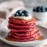 Keywords: beet pancakes, healthy pancakes, gluten free breakfast, oat flour pancakes, pink pancakes, veggie pancakes, breakfast recipe