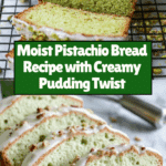 This Pistachio Bread is a moist and flavorful quick bread infused with the lovely nutty taste of pistachios and a hint of sweet pistachio pudding. Easily baked in a loaf pan, it’s perfect for breakfast, a snack, or dessert, topped with a simple icing glaze and extra chopped pistachios for crunch.